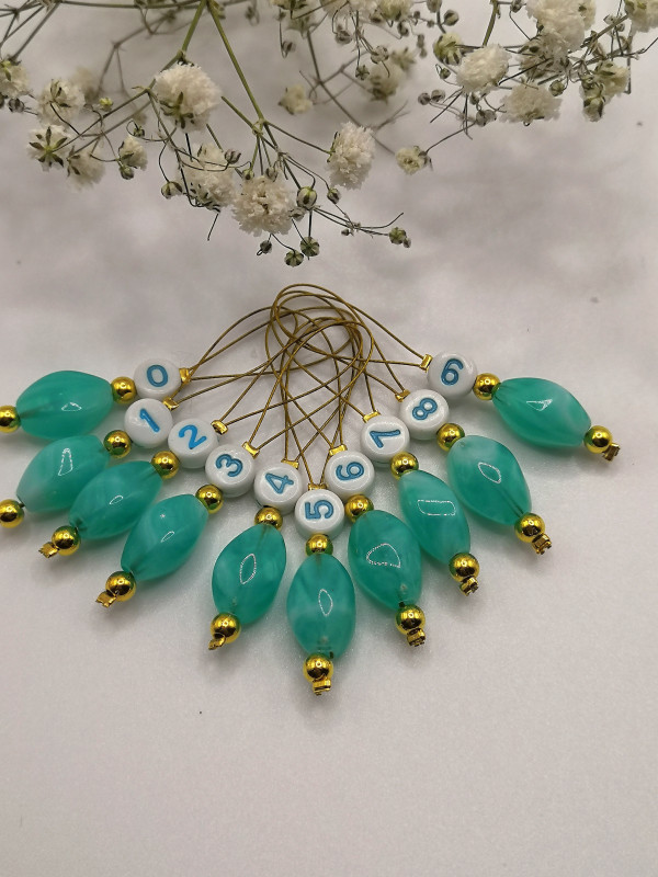 ЗЛ-10/ЛАЗ-2023 Лазурный набор маркеров для вязания (10 шт.) + счетчик рядов (1 шт.)