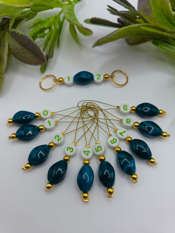 ЗЛ-11/ИЗ-2023 Изумрудный набор маркеров для вязания (10 шт.) + счетчик рядов (1 шт.)