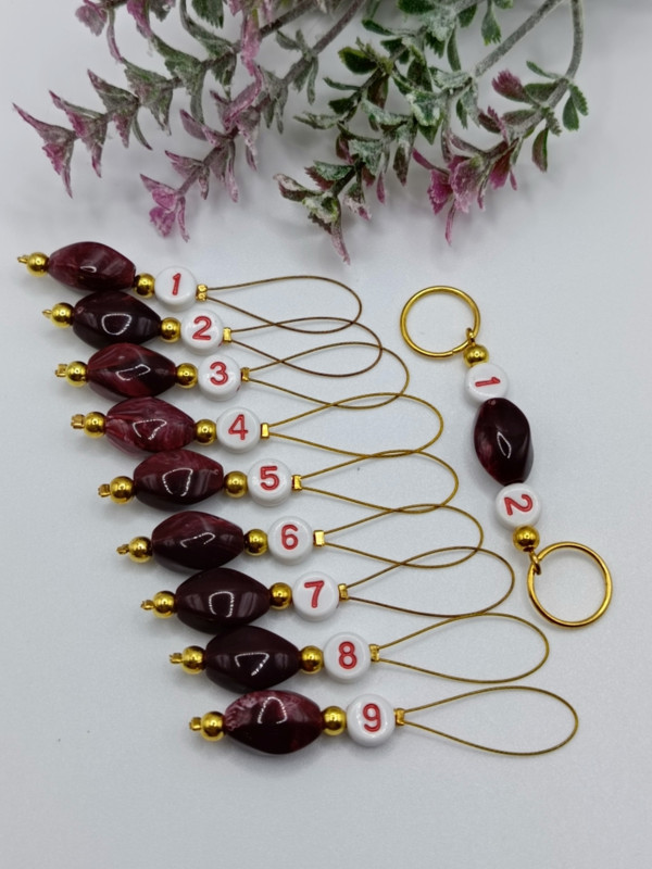ЗЛ-1/К-2023 Бургундия набор маркеров для вязания (10 шт.) + счетчик рядов (1 шт.)