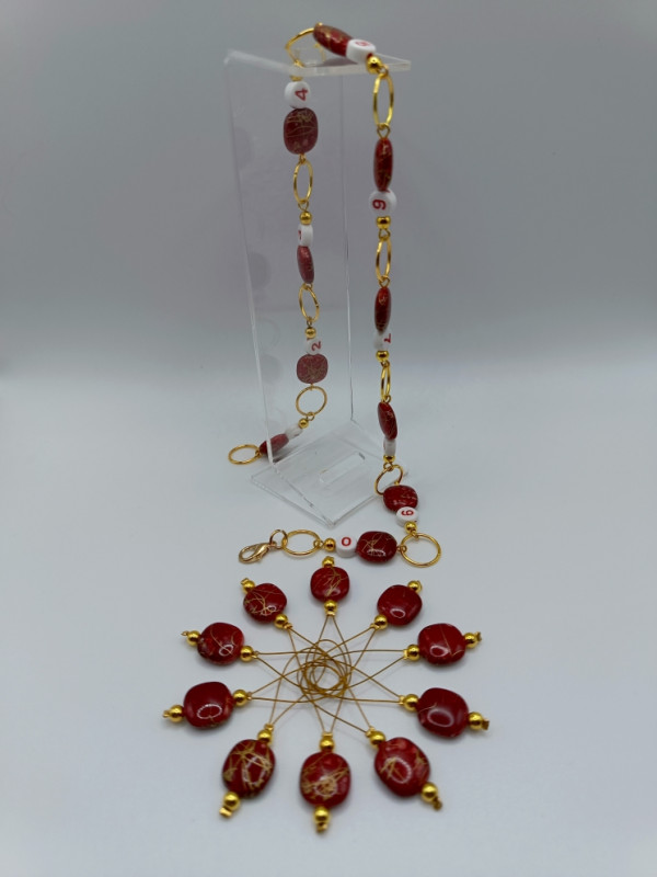ЗЛ-2023/2-3БОР Бордовый счетчик рядов на цепочке (1 шт.) + набор маркеров для вязания (10 шт.)