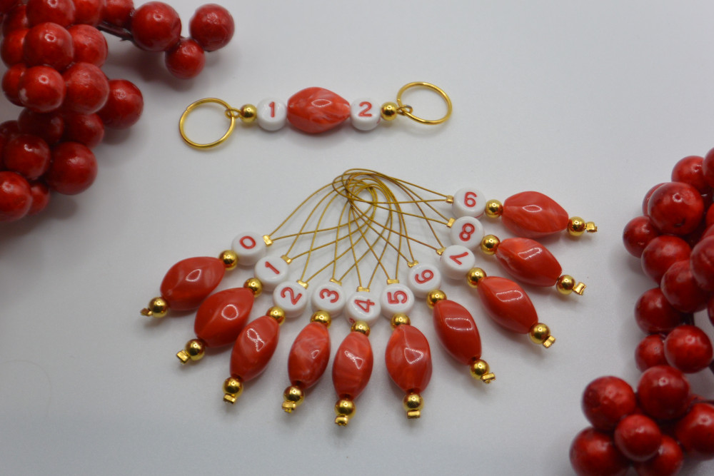 ЗЛ-5/КР-2023 Бледно красный набор маркеров для вязания (10 шт.) + счетчик рядов (1 шт.)