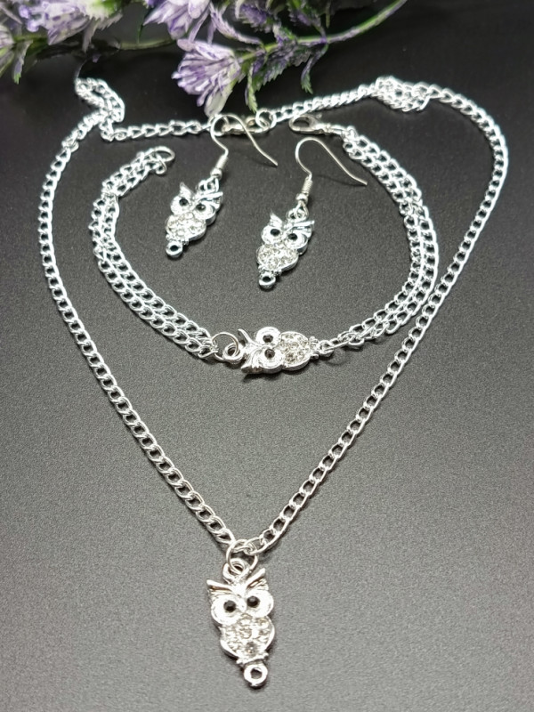 WW СР-22/2-БСЦ Набор "Совушка": Браслет и цепочка с кулонами + серьги