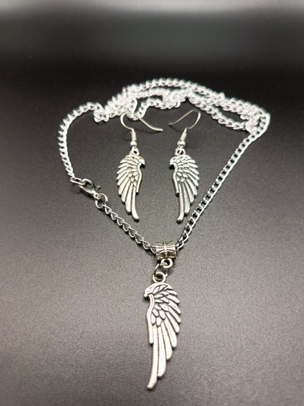 WW СР-24/8-СЦ Набор "Крылья": Цепочка с кулоном + серьги. Цвет: серебро