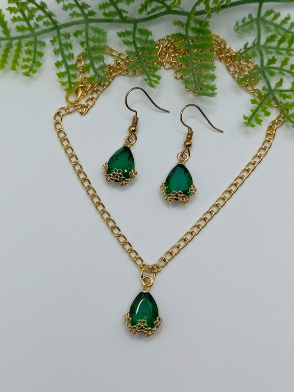 WW ЗЛ-23/22-СЦ Набор "Зеленая капелька": Цепочка с кулоном + серьги. Цвет: золото