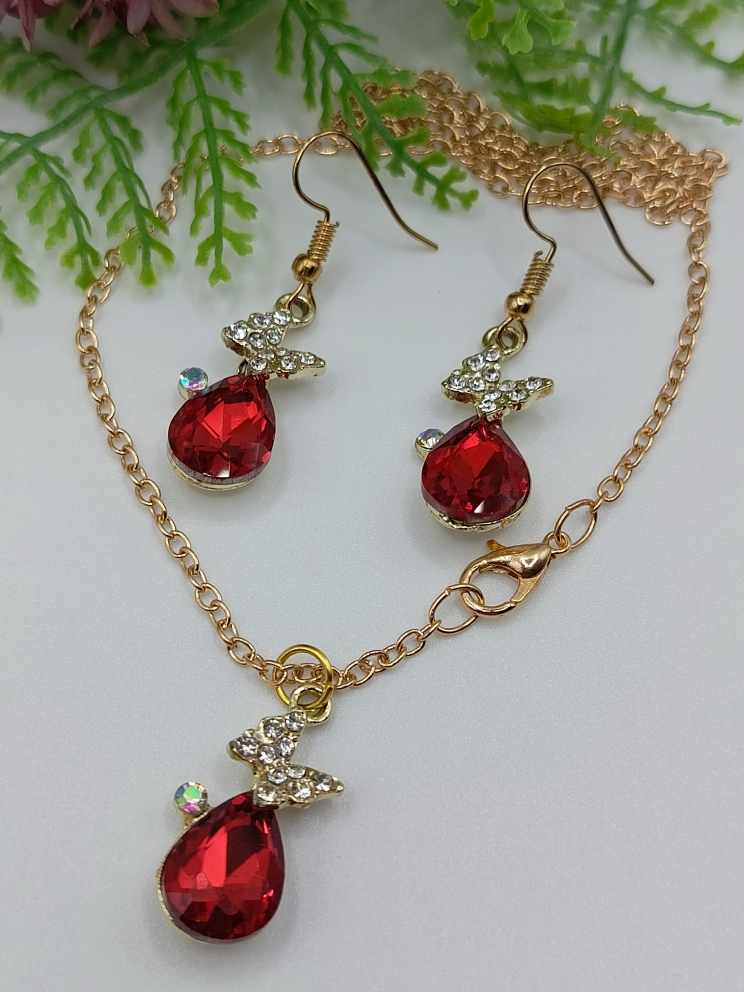 WW ЗЛ-23/34-СЦ Набор "Бабочка с красным камнем": Цепочка с кулоном + серьги. Цвет: золото