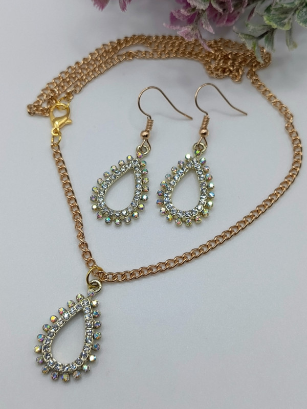 WW ЗЛ-25/11-СЦ Набор "Капля в стразах": Цепочка с кулоном + серьги. Цвет: золото