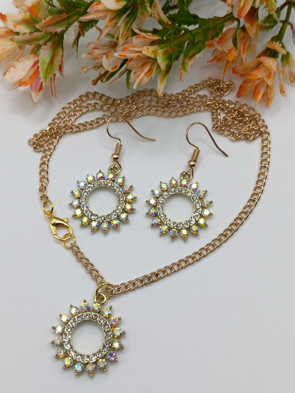WW ЗЛ-25/12-СЦ Набор "Солнце в стразах": Цепочка с кулоном + серьги. Цвет: золото
