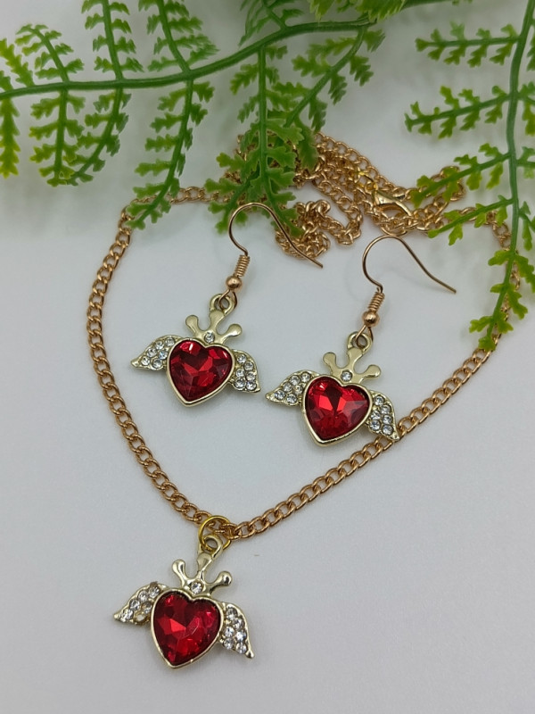 WW ЗЛ-25/35-СЦ Набор с красным камнем: Цепочка с кулоном + серьги. Цвет: золото