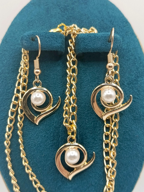 WW ЗЛ-25/6-СЦ Набор "Жемчужина в сердце": Цепочка с кулоном + серьги. Цвет: золото