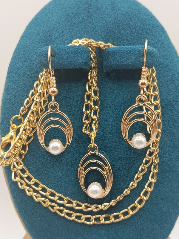 WW ЗЛ-25/8-СЦ Набор "Бесконечность с жемчугом": Цепочка с кулоном + серьги. Цвет: золото