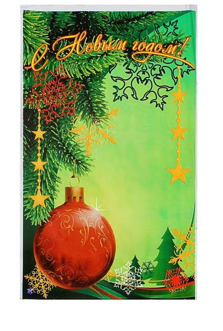 1191784 Пакет фольгированный зеленый "С Новым годом! Елочный шар" Размер 25 * 40 см.