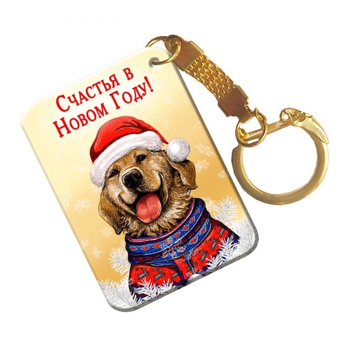 2247225 Брелок прямоугольник "Счастья в Новом году!" Дерево Размер 4 * 6 см.