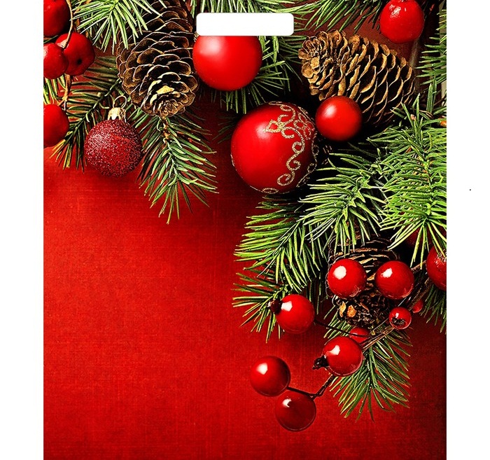 2728125 Пакет ПВД "Еловая веточка на красном" Размер 39*45 см.Максим.вес 5 кг.