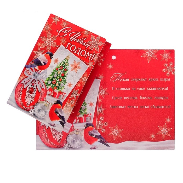 3886547 (2-71-5552 А) Открытка-подвеска "С Новым Годом! Снегири" Размер 5,5 * 8 см.