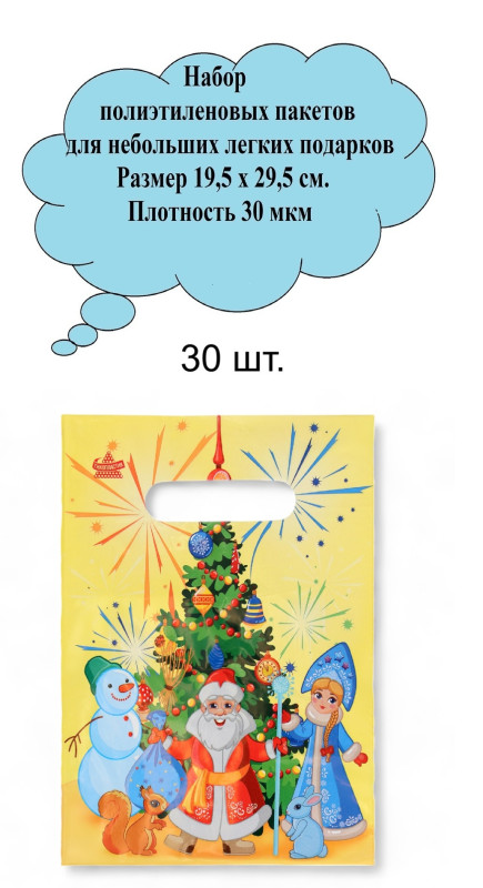 WW 10636551/1 Набор новогодних пакетов (30 шт.) Размер 19 х 25 см. Плотность 30 мкм