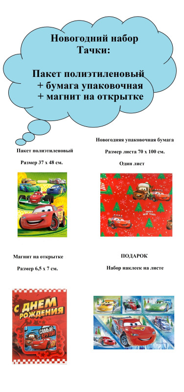WW 48.068/3 Новогодний набор "Тачки": Пакет п/э + упак.бумага + магнит+ подарок