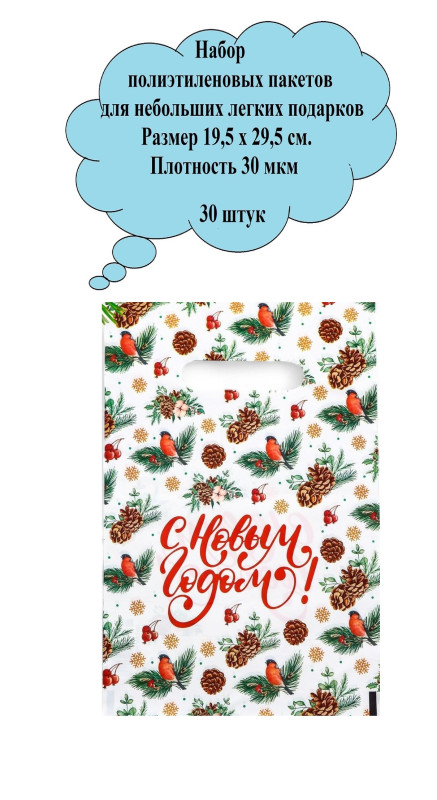 WW 9748163/1 Набор новогодних пакетов (30 шт.) Размер 19 х 25 см. Плотность 30 мкм