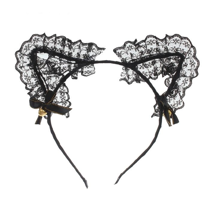2311687 Карнавальный ободок "Черная киска с ажурными ушками"