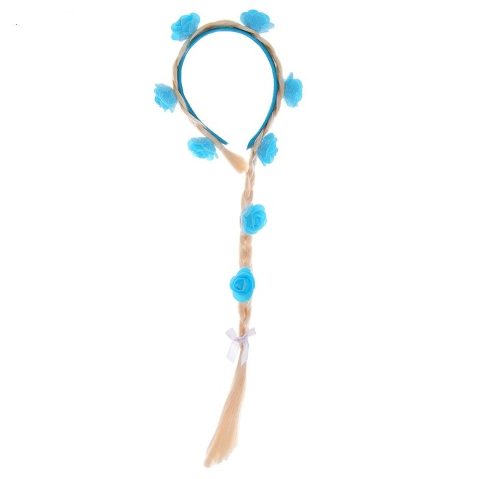 3544602 Карнавальный ободок "Белая коса с голубыми цветами"