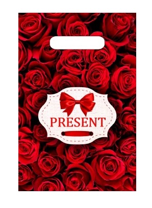 4166756 Пакет "PRESENT.Красные розы" Размер 19,5 х 29,5 см. Плотность 30 мкм