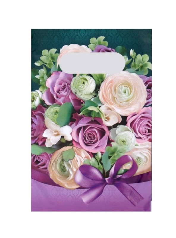 4962403 Пакет фиолетовый "Пионы и фиолетовый бант" Размер 20 х 30 см Плотность 30 мкм
