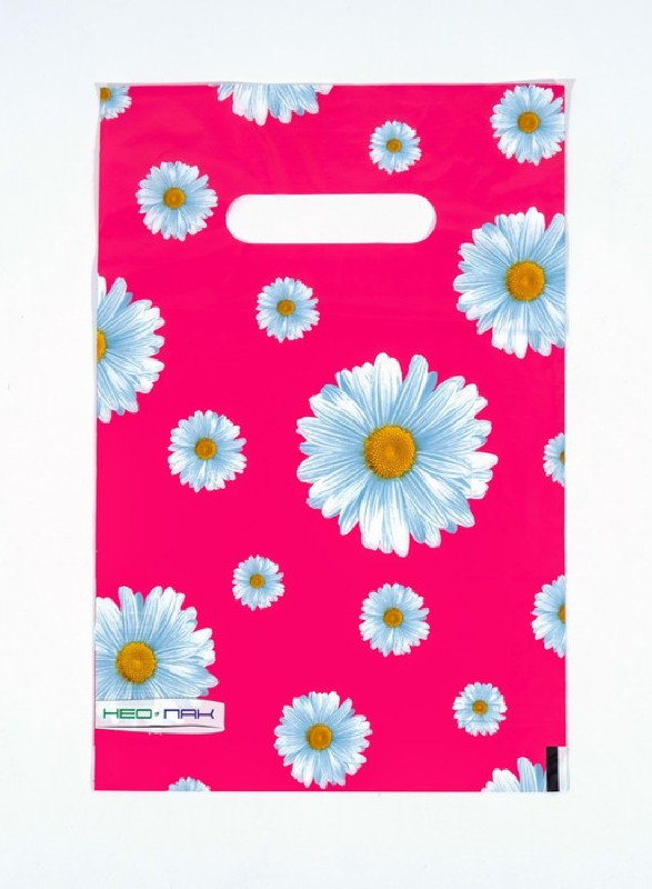 9019433 Пакет малиновый "Ромашки" Размер 19,5 х 29,5 см. Плотность 30 мкм