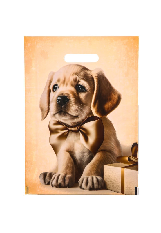9687094 Пакет "Щенок с подарком" Размер 30 х 40 см. Плотность 50 мкм