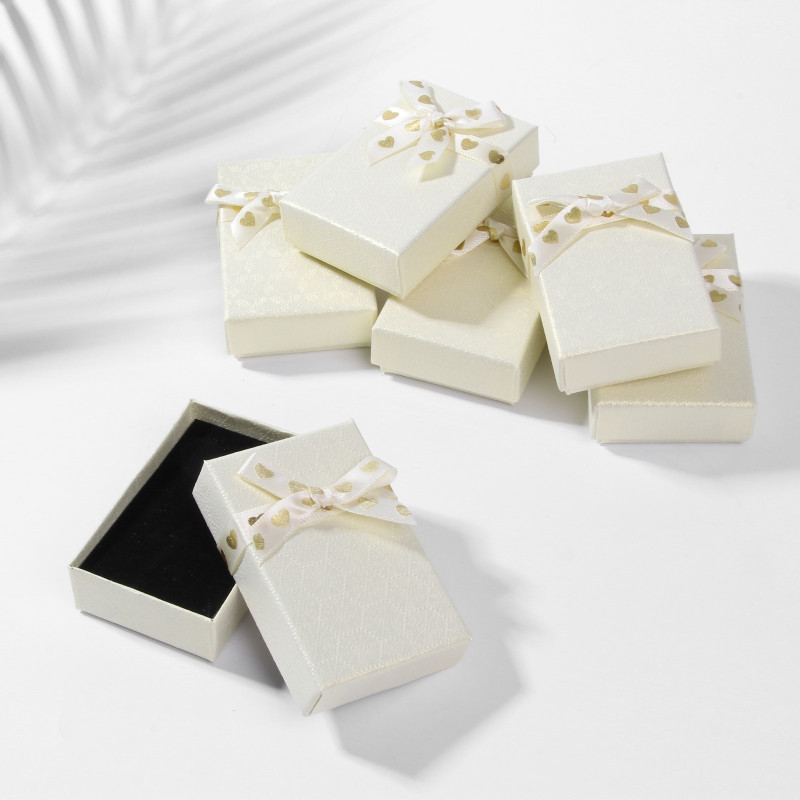 4454857 Бежевая с бантиком подарочная коробочка для упаковки. Размер 8 х 5 см.