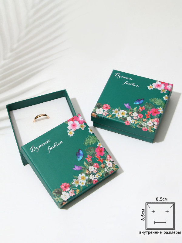 4689998 Темно зеленая подарочная коробочка "Цветочная" Размер 9 х 9 см.( полез.часть 8,5 х 8,5 см.)