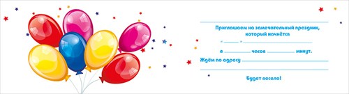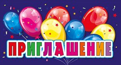 097.351 Приглашение фиолетовое универсальное " Воздушные шарики" Тиснение блестками