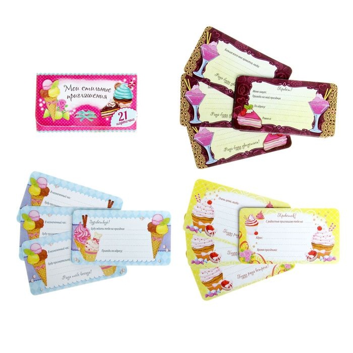 / 1009597 Приглашение малое 2-стороннее "Мои стильные приглашения" Размер 9 * 5 см.Рисунок ассорти
