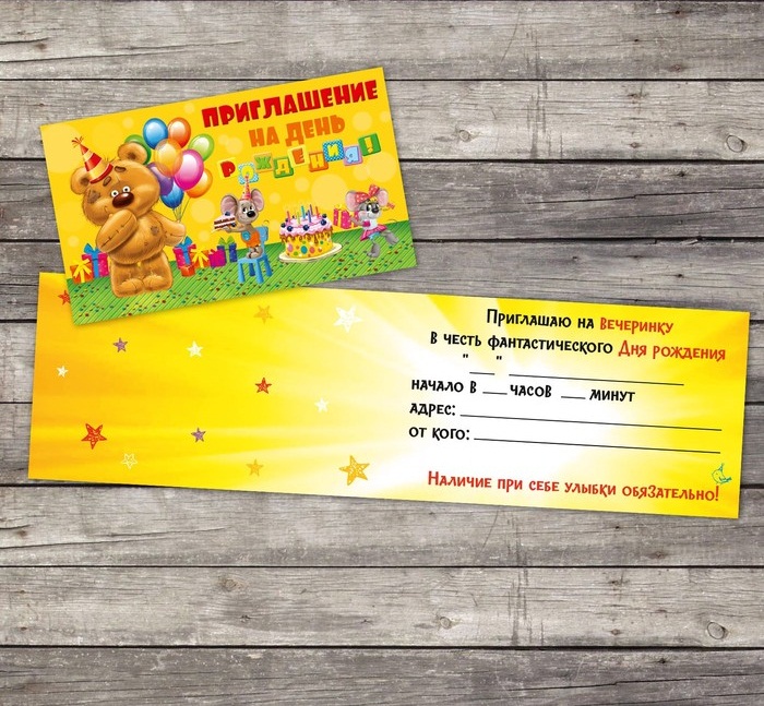 3108257 Приглашение на день рождения "Мишка и мышата на празднике"