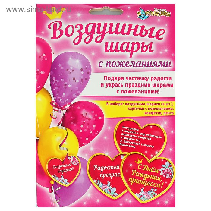 1393726 Набор шаров с пожеланиями "С Днем рождения,Принцесса!" (8 шт.) Диаметр 25 см.