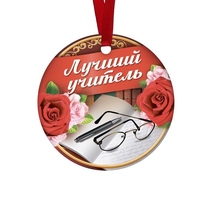 2678599 Медаль магнит "Лучший учитель" на ленте. Диаметр 7 см.