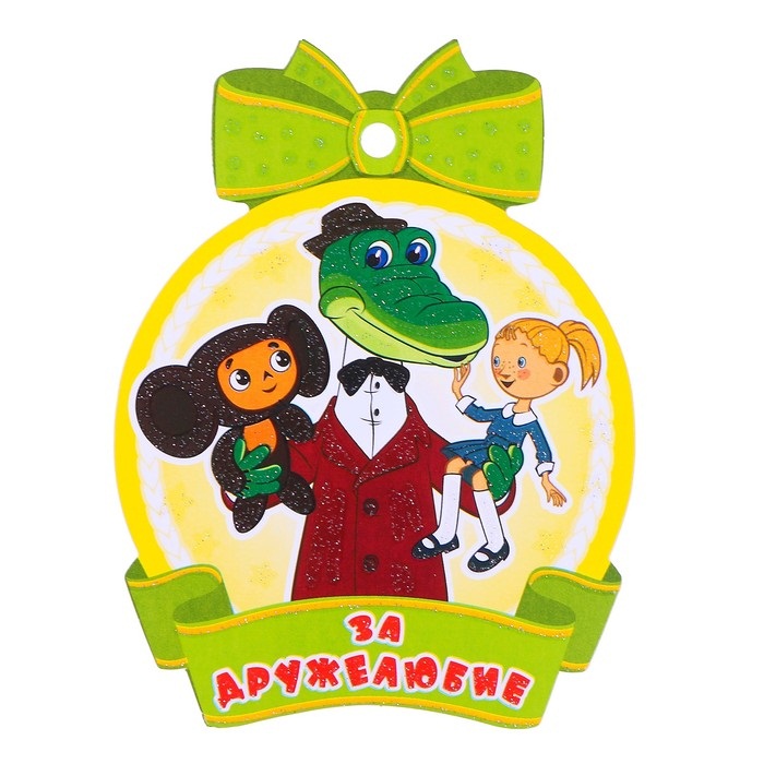 4214034 (М2-012525) Медаль картон "За дружелюбие! Крокодил Гена и друзья" Тиснение блестками