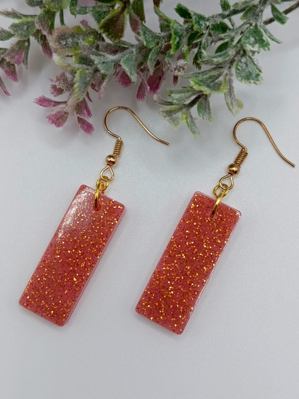 WW ЭСМ-25/1-П Прямоугольные серьги из эпоксидной смолы. Цвет бледно красный с золотом