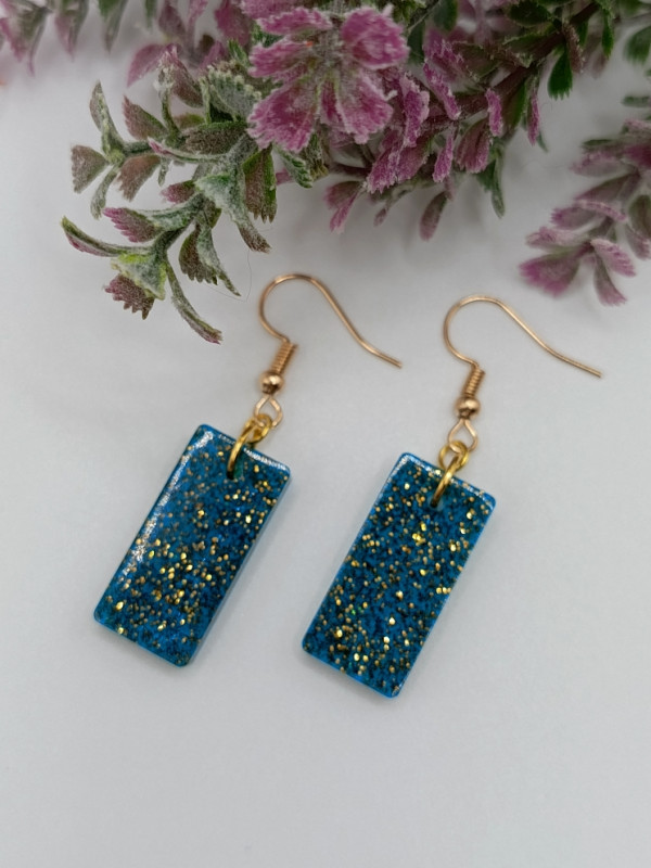 WW ЭСМ-2П-25/1 Прямоугольные серьги из эпоксидной смолы. Цвет изумрудный