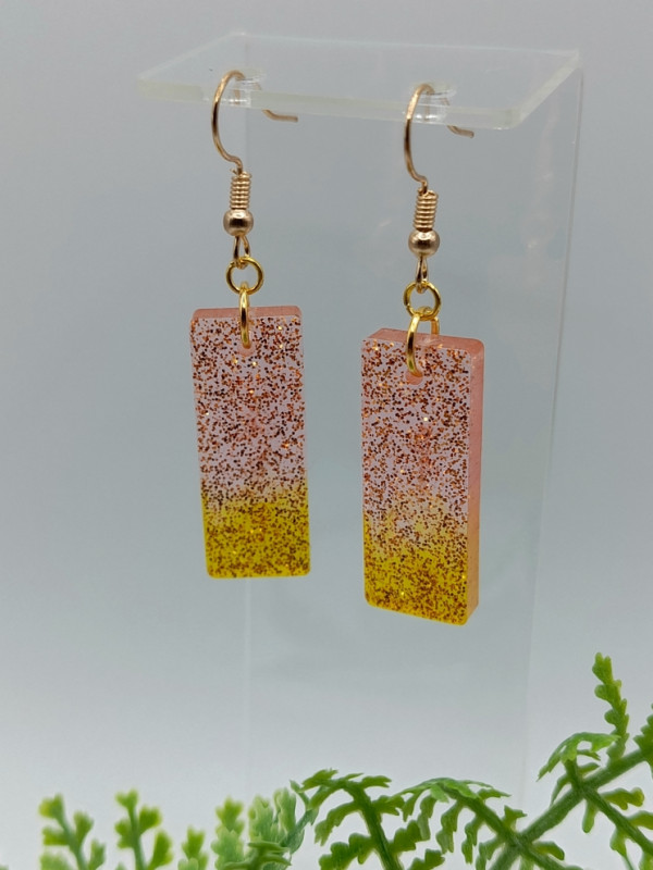 WW ЭСМ-25/8-П Прямоугольные серьги из эпоксидной смолы. Цвет темно зеленый с бордовым