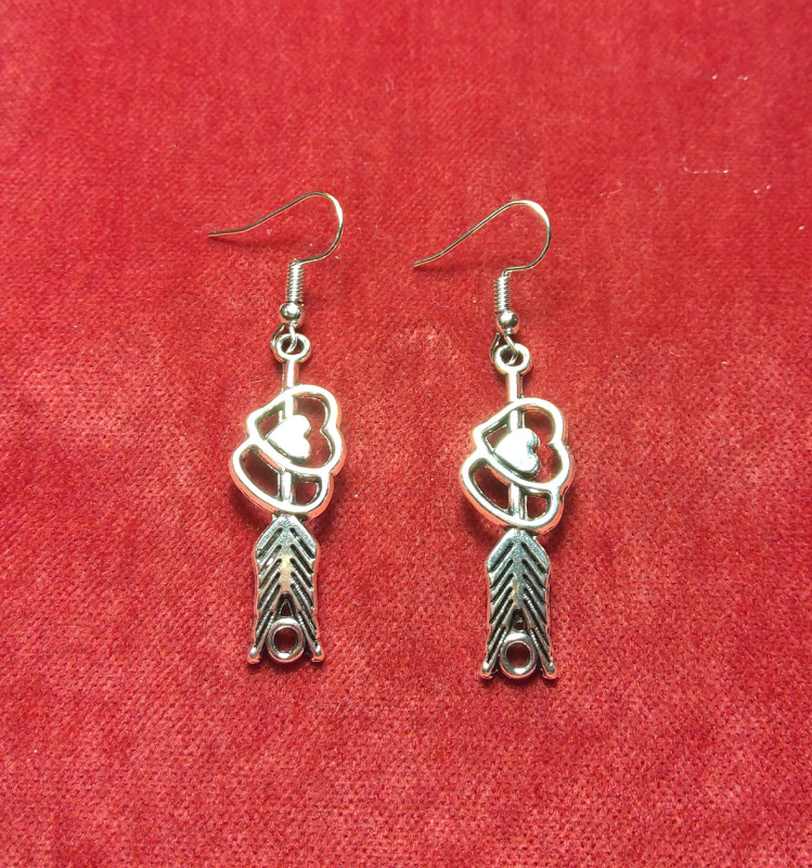 WW СР-22/4 Серьги "Два сердца со стрелой" (2 шт.) Цвет: серебро Длина 5,7 см.