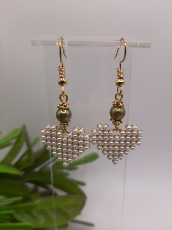 WW ЗЛ-22/13 Серьги "Жемчужное сердце с зеленым камнем" (2 шт.) Длина 4,9 см. Цвет золотой