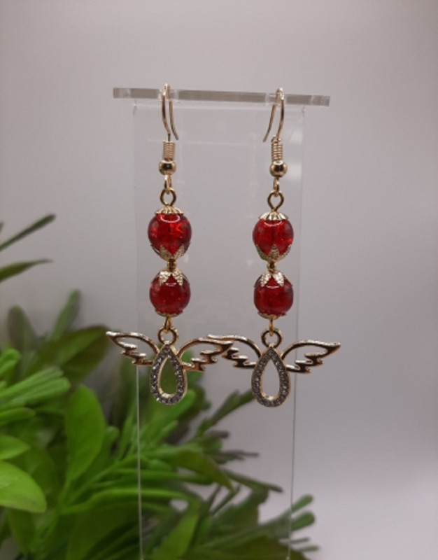 WW ЗЛ-22/18 Серьги "Крылья с красными камнями" (2 шт.) Цвет золотой. Длина 6,2 см.