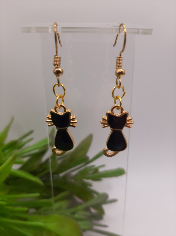 WW ЗЛ-22/4 Серьги "Черная кошечка" (2 шт.) Цвет золотой. Длина 4,5 см.