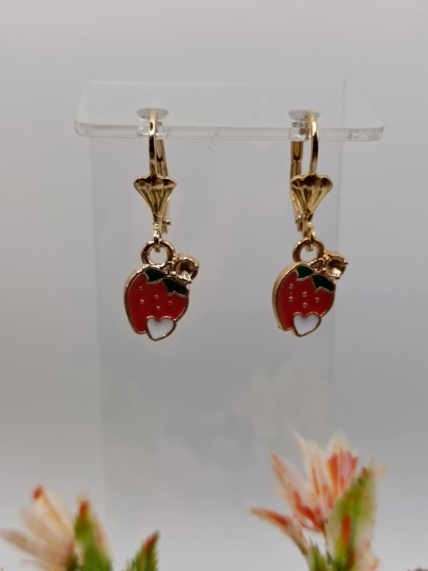 WW ЗЛ-23/17 Серьги с застежками "Мини земляника" (2 шт.) Цвет: золото Длина 3 см.