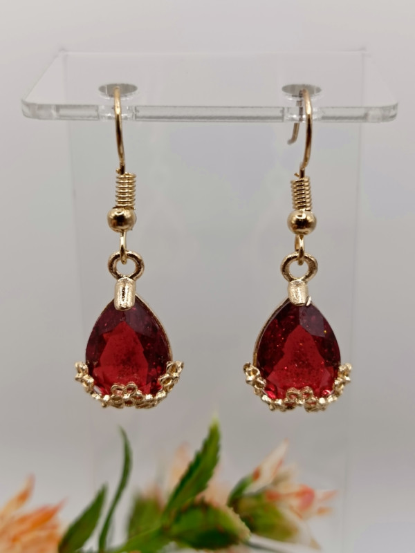 WW ЗЛ-23/21 Серьги "Красная капелька" (2 шт.) Цвет: золото Длина 3,7 см.