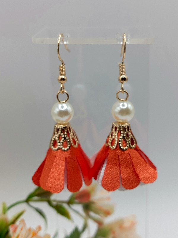 WW ЗЛ-24/18 Серьги "Красно белый бутон" (2 шт.) Цвет: золото