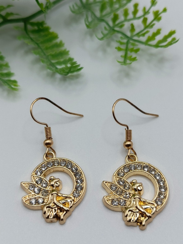 WW ЗЛ-24/48 Серьги "Фея в кругу со стразами" (2 шт.) Цвет золотой. Длина 4,5 см.