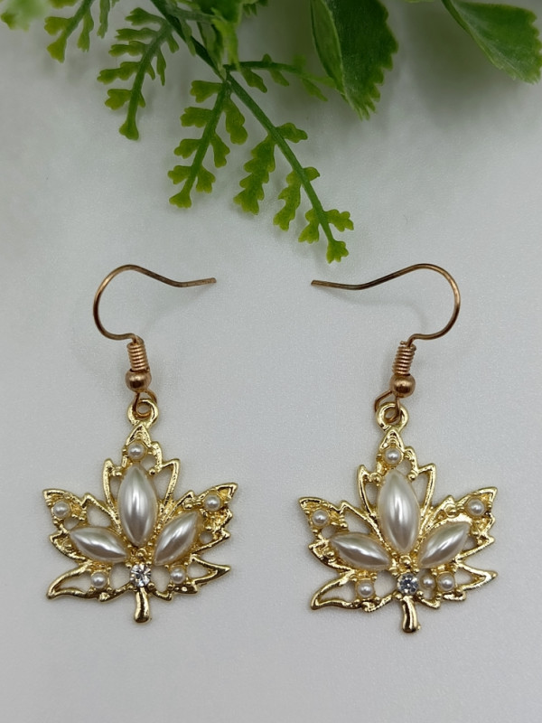 WW ЗЛ-24/58 Серьги "Тысячелистник с полужемчужинами" (2 шт.) Цвет золотой. Длина 4,5 см.