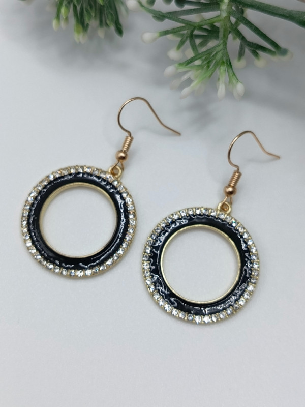 WW ЗЛ-25/13 Серьги "Черный круг в стразах" Цвет: золотой