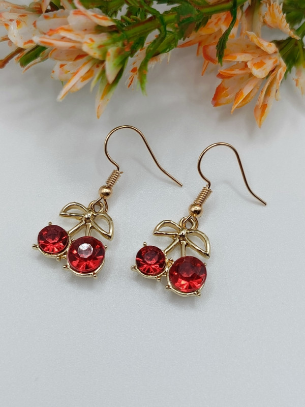 WW ЗЛ-25/22 Серьги "Красные вишенки" Цвет: золотой