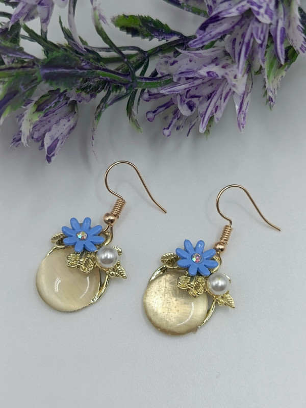 WW ЗЛ-25/7 Серьги с голубым цветком (2 шт.) Цвет золотой